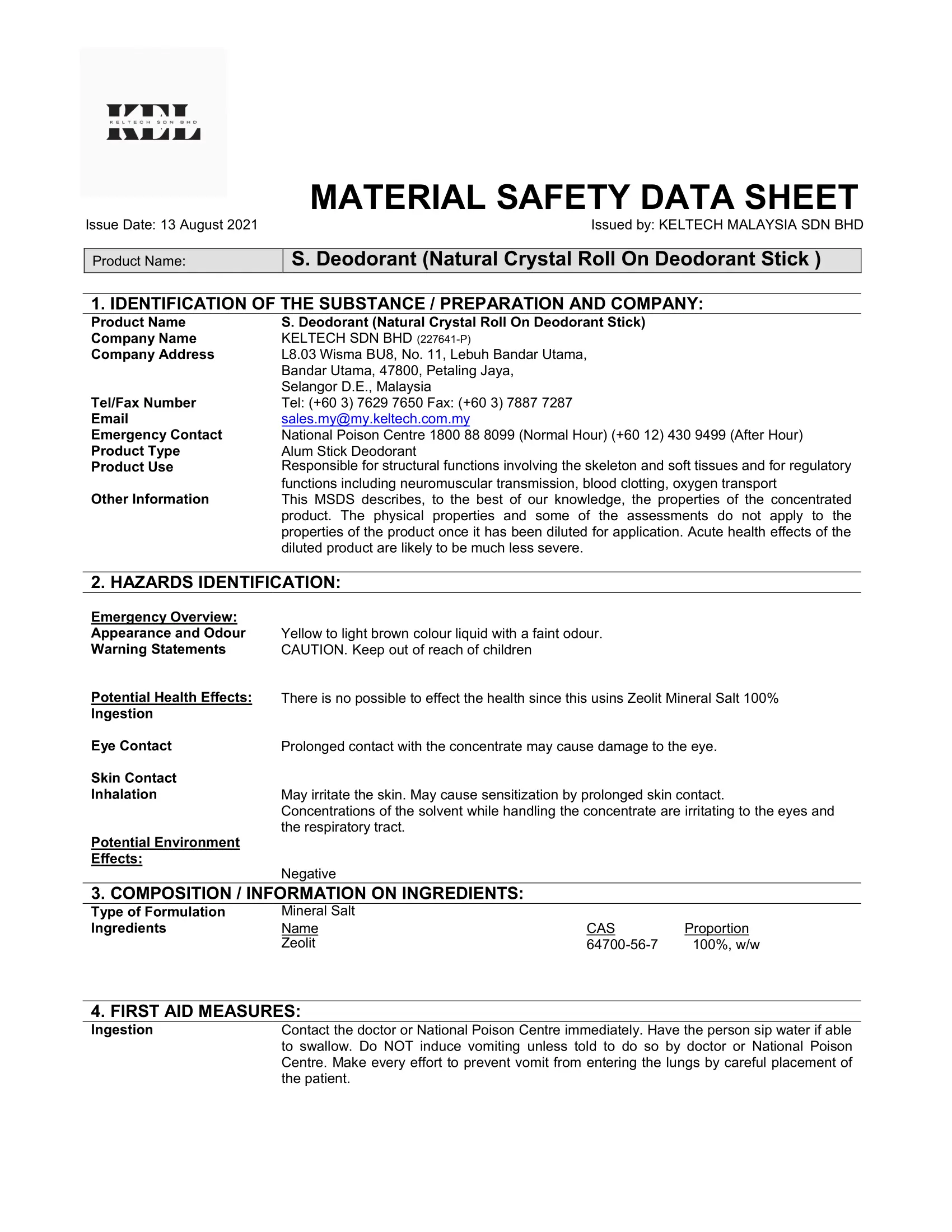 TERBUKTI DEODORAN YANG BERADA DI PASARAN SEKARANG HAMPIR 100% MEMPUNYAI ALUMUNIUM CHLORIDE. DALAM BEBERAPA KAJIAN KLINIKAL, PAKAR-PAKAR MENEMUI BUKTI BAHAWA GARAM MINERAL ZEOLIT MEMPUNYAI 1001 KHASIAT YANG MEMBANTU MENGELUARKAN TOKSIN DAN KEKOTORAN DARIPADA BADAN DI SAMPING MEMPERTINGKAT TONA KULIT ANDA